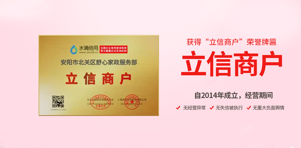 安陽市北關(guān)區(qū)舒心家政服務(wù)部立于2014年 是經(jīng)工商管理部門注冊(cè),具有母嬰護(hù)理服務(wù)機(jī)構(gòu) 所有上崗人員均通過崗位技能培訓(xùn)嚴(yán)格考核,持有身份證 健康證 母嬰護(hù)理師證并且在公安部門備案方可上崗。安陽市北關(guān)區(qū)舒心家政服務(wù)部針對(duì)產(chǎn)婦和新生兒的特殊護(hù)理要求制訂一整套的護(hù)理方法 在現(xiàn)代科學(xué)理念的指導(dǎo)下通過對(duì)產(chǎn)婦的飲<了解更多>